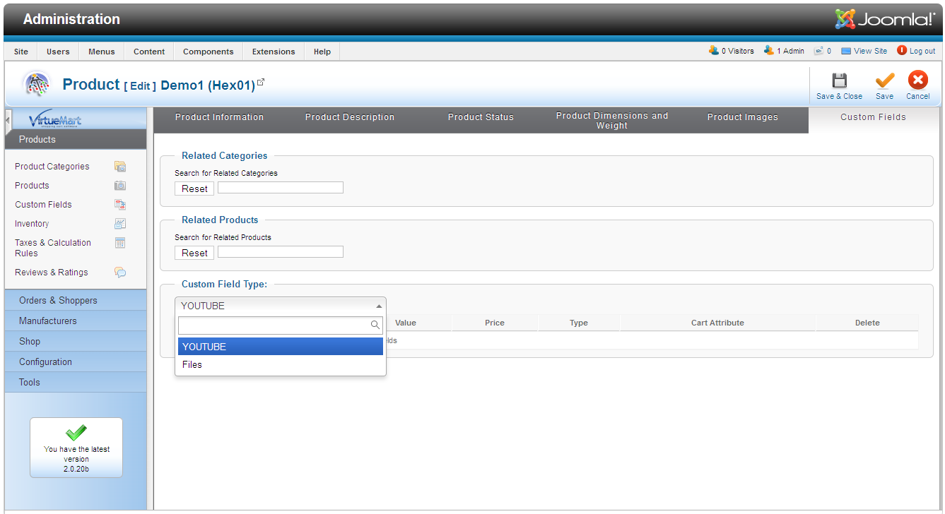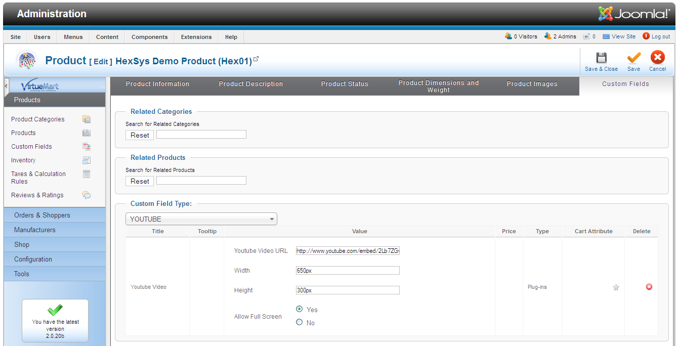Many Virtuemart shop owners wonder “How to embed / insert Youtube Videos on Virtuemart product detail page”. You just need to install the plugin like a normal Joomla plugin, enable it then you just need to create a virtuemart custom field and It's now ready for you to easily copy and paste Youtube embed link into the custom field to display it on Product Detail page without any extra effort. HexSys Youtube Videos for Virtuemart Plugin is a virtuemart custom field plugin that allows the shop owner to embed Youtube videos into Virtuemart product detail page using Virtuemart Product Custom Fields. You can simply add Youtube embed link inside textfield which are generated with this plugin, furthermore you can display the video at product detail page at Bottom/Top/Middle positions.
