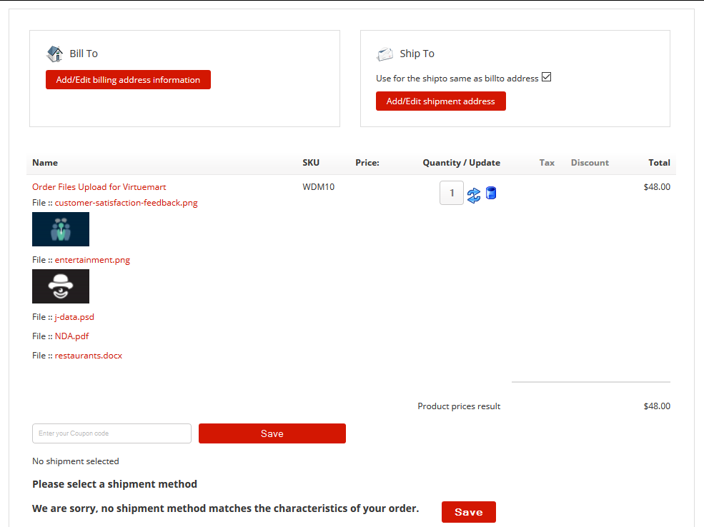 Order Files Upload for Virtuemart
