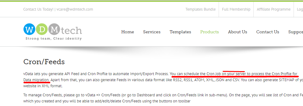 Please check the first paragraph in Cron / Feed documentation section here: www.wdmtech.com/vdata-documentation-cron-feeds . It has been clearly mentioned that you need to setup the Cron Job on your server.