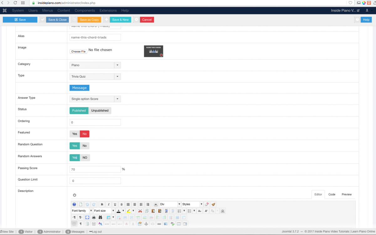 On Joomla 3.7.2 the quiz total time option doesn't appear was created by Federico Dantoni