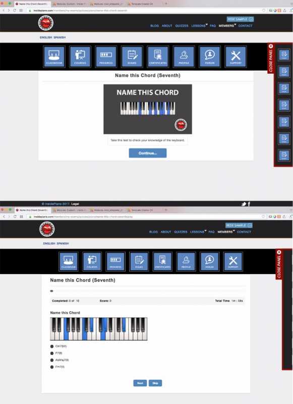 Also on the Spanish site the button Show Answer Sheet at the end of the Quiz do not work.