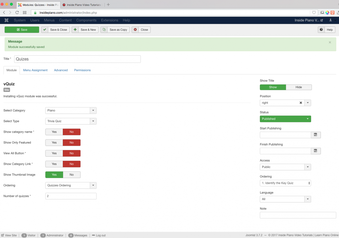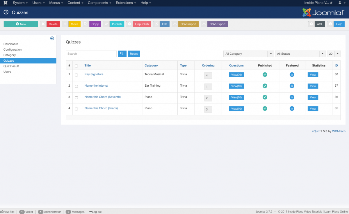 Please share your Backend & FTP login credentials via Contact us form, We'll look into it. Need to check the access settings for both the Quizzes in Piano category.