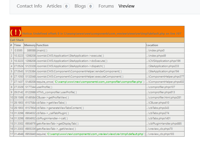 1. The script from “http://etanee.local:81/index.php/en/?option=com_vreview&task=vreviewjs” was loaded even though its MIME type (“text/html”) is not a valid JavaScript MIME type.[Learn More] cb-profile