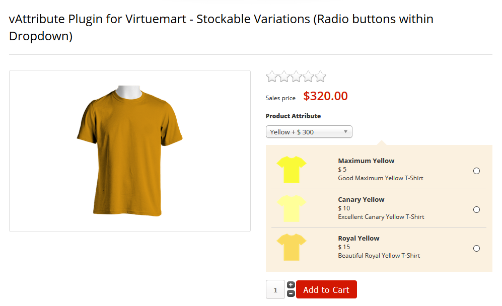 An attribute in VirtueMart is defined as any property of a product, for example size, color, material, resolution etc. Probably you don’t want to add as many product pages as you have products – it would be easier to create only few but with attributes which can be selected by user. Adding Attributes to your Virtuemart Product Information as Stockable Variants (as Dropdown List) is very easy and fast now. vAttribute is a very quick and simplistic way of adding an attribute as a product variation.