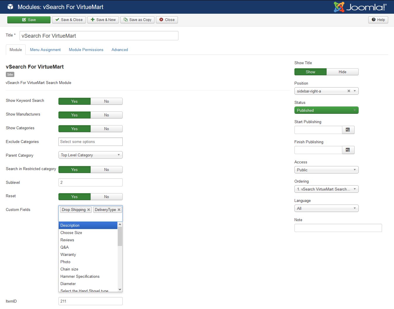 vSearch For VirtueMart is offering you both a Powerful Product Search via Keywords and a Filtering module that filters with Categories, Manufacturers and Custom Fields which helps your customers to find their favorite products what they are looking for, in seconds. Customers can narrow the search scale by categories and its child level so that it saves time for them. It is very simple but powerful module for Joomla to display Virtuemart product search result.